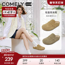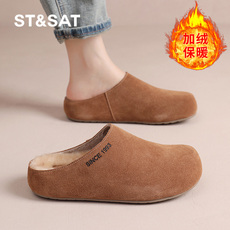 Devo/的沃软木拖鞋包头加毛加绒保暖半包半拖休闲外穿冬女鞋66001