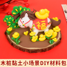 黏土手工diy材料包木桩立体场景幼儿园小学生半成品制作新年礼物