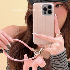 kaia 小众ins甜妹粉色波点竖纹狗狗适用苹果16promax手机壳iphone13新款15女14pro带挂绳16pro全包防摔手机套