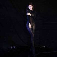 琉光有光丝滑连体衣性感全包露背紧身高领油亮免脱丝袜男女同款