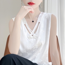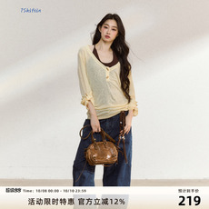 MULVAN 撞色带胸垫v领针织吊带背心女外穿修身设计感小众短款上衣