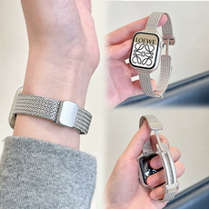 适用苹果s10手表表带watchS11新款麦穗款金属s9磁吸卡扣高级感s8小众精致小蛮腰智能SE代女款秋s7透气设计感