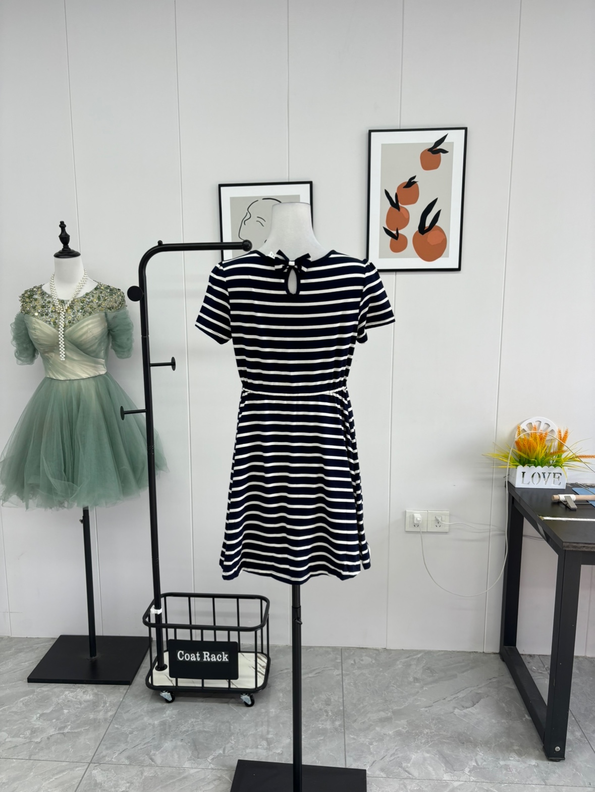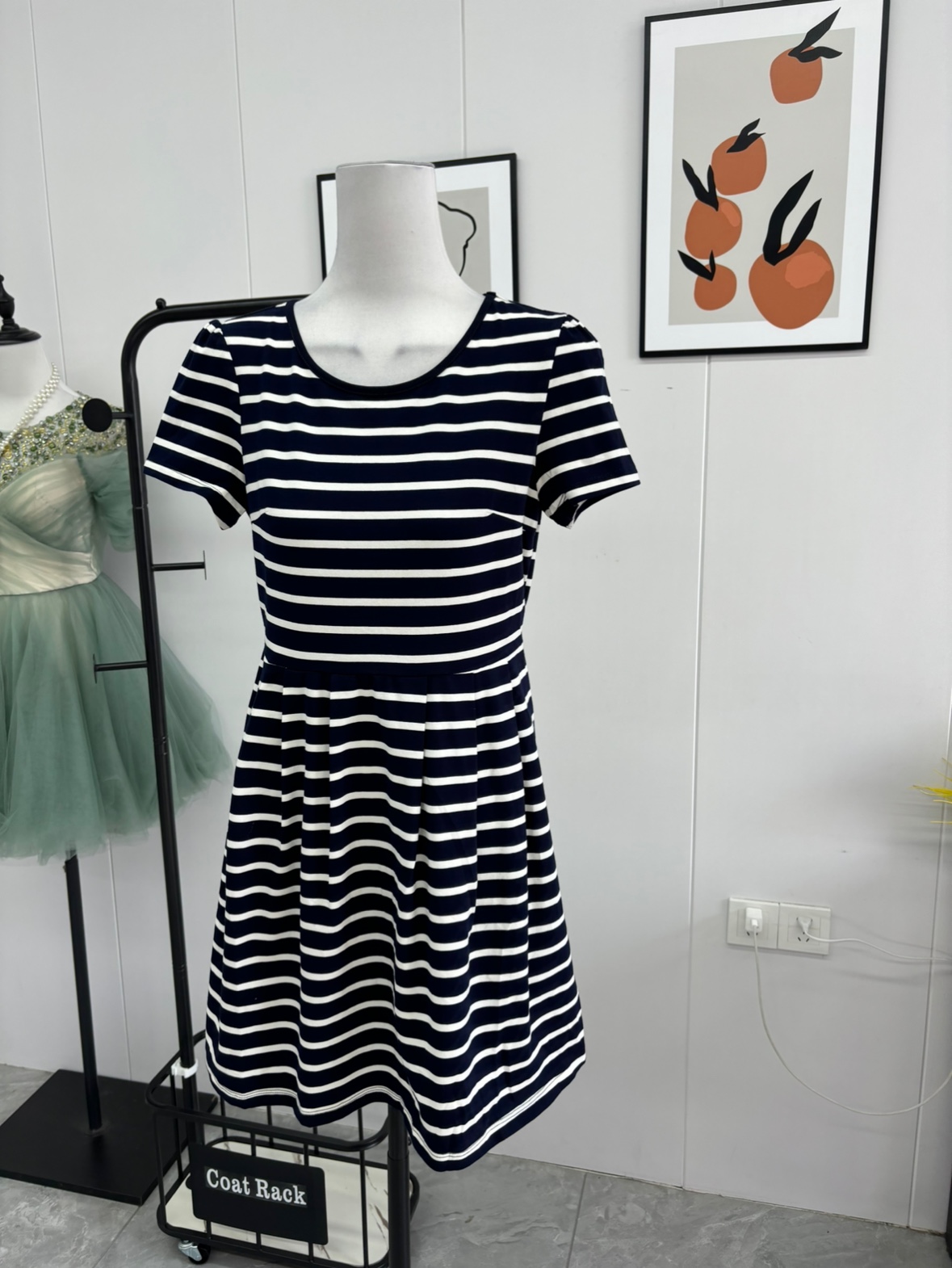 高端时尚夏季条纹新款2024连衣裙修身短袖中长款T恤显瘦韩版打底