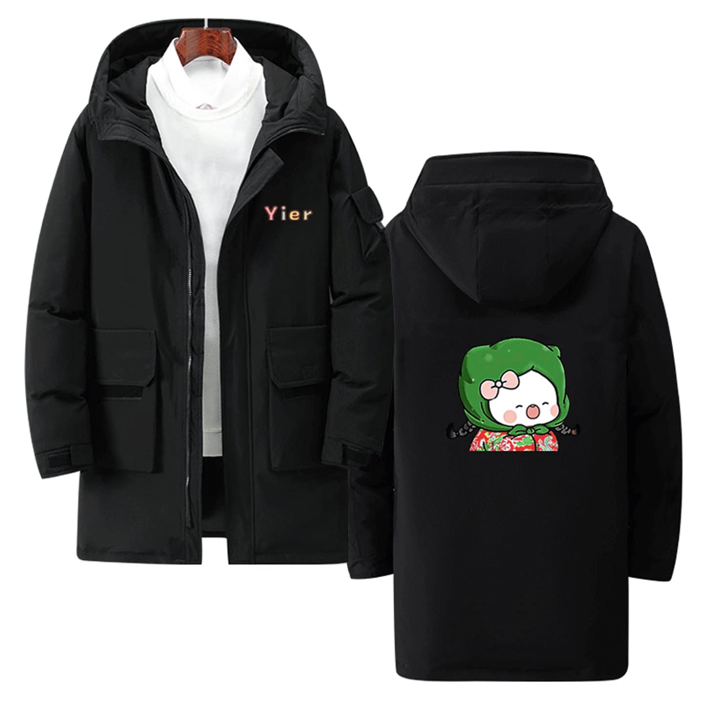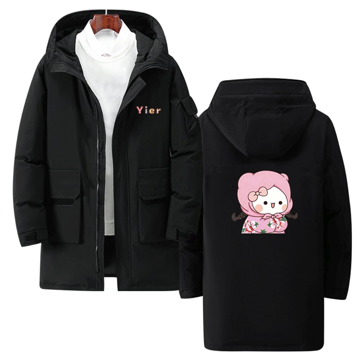 一二和布布动漫周边秋冬情侣可定制中长款羽绒服卡通可爱印花男女