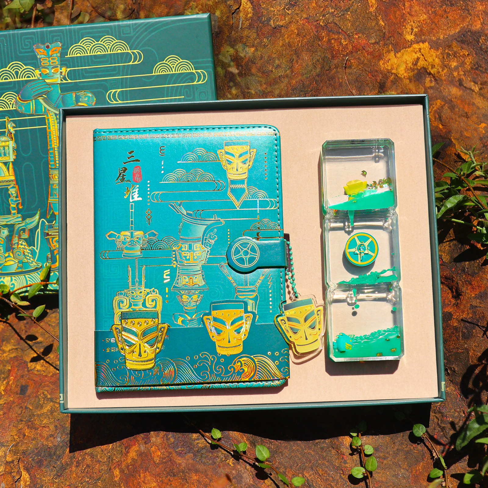 三星堆烫金PU手账本礼盒套装中国风笔记本子博物馆伴手礼文创礼品旅行纪念品送老师同学生日礼物创意学生文具