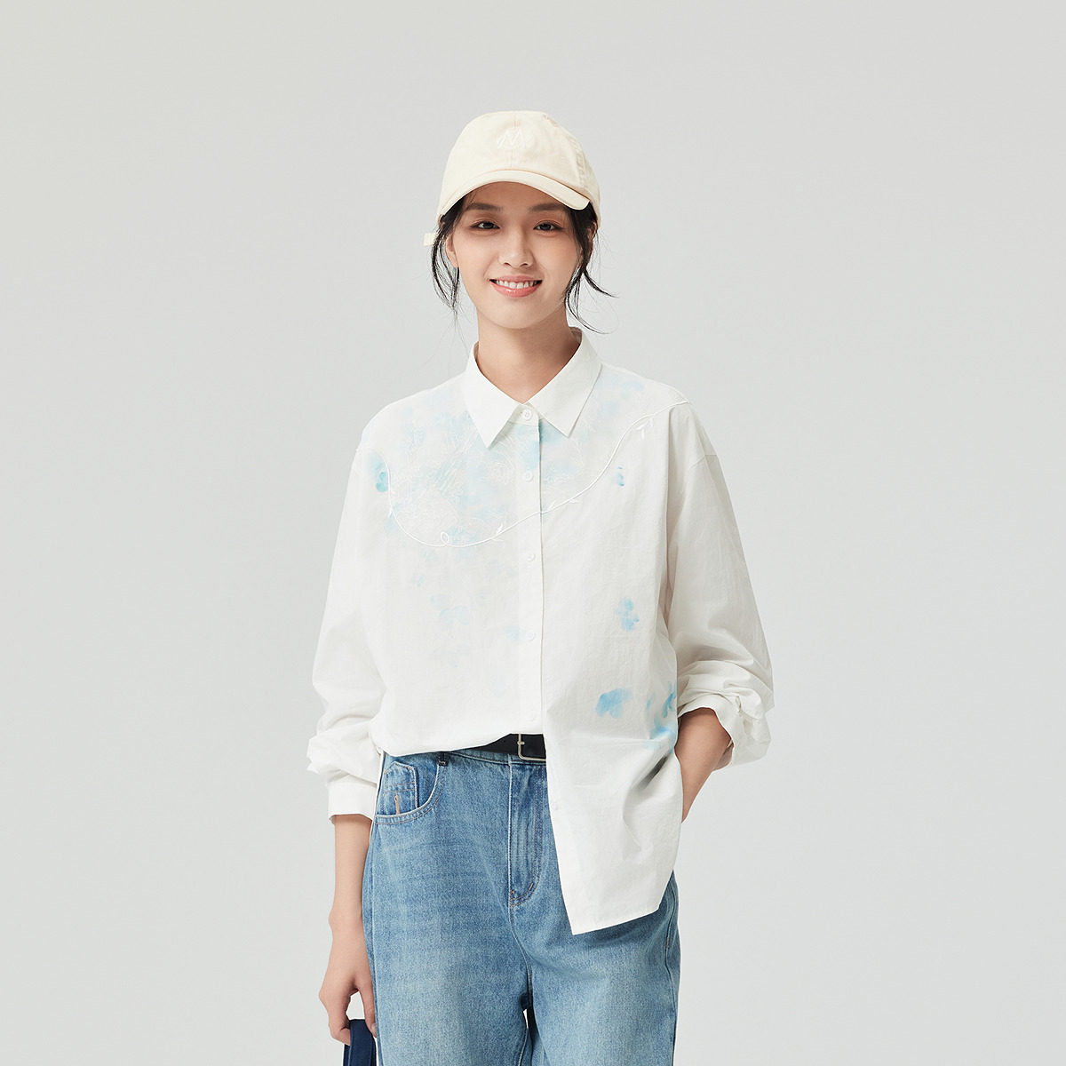 古木夕羊时尚拼接绣花设计蕾丝长袖翻领衬衫女GS510082013