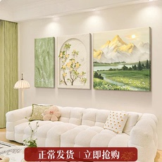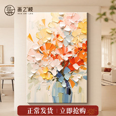 奶油风大芬油画村客厅装饰画简约肌理感花卉三联挂画高级艺术壁画