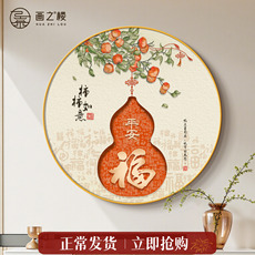 柿柿如意玄关装饰画福字圆形入户走廊过道挂画葫芦寓意好餐厅壁画
