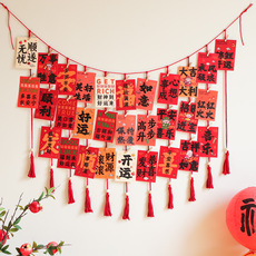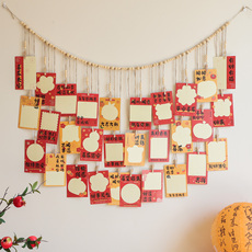 红色喜庆祝福卡片展示挂件创意流苏挂毯壁饰照片收纳展示店铺布置