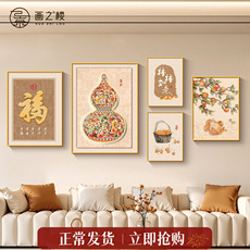 葫芦福字客厅大白墙装饰画柿柿如意创意新款组合挂画简约大气壁画