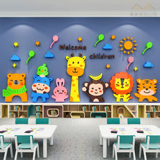 卡通动物欢迎小朋友幼儿园环创主题墙贴画3d立体班级教室布置装饰