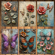 仿3D复古铁艺蝴蝶壁饰立体墙面装饰花园户外布景防水防晒铁皮画