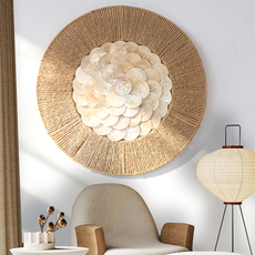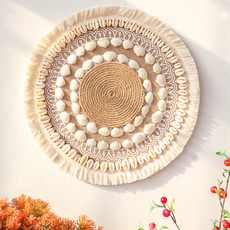波西米亚风贝壳流苏拉菲草编壁饰民宿家居店铺装饰度假风墙面挂饰