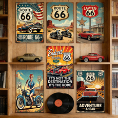 美式复古做旧铁皮画66号公路餐厅酒吧车库工业风铁艺壁饰墙面装饰