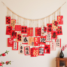 新年快乐卡片墙贴壁饰麻绳照片墙装饰挂件春节喜庆氛围客厅布置