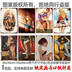 复古铁皮画美式怀旧美女创意个性墙面壁饰酒吧咖啡厅装饰画挂画