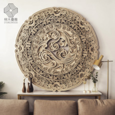 木块挂件墙面壁饰玄关过道走廊装饰实原木质侘寂日式酒店民宿餐厅