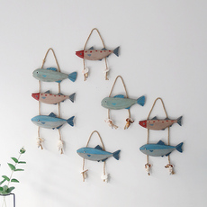 地中海风手工实木鱼挂件墙面立体鱼形壁饰酒店房间走廊玄关装饰品
