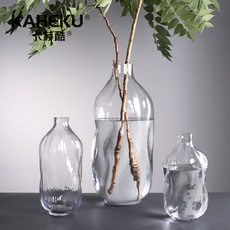 Kaheku侘寂风锤纹自然形态透明玻璃花瓶马醉木小口客厅落地大花器