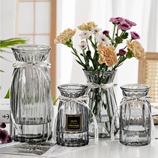 北欧玻璃花瓶透明竖纹创意客厅插花向日葵玫瑰百合花家用装饰摆件