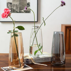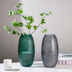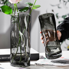 ins风高级感冰川直筒花瓶摆件玻璃透明简约水培富贵竹客厅装饰品