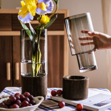高级感新中式创意简约玻璃花瓶水养鲜花插花客厅桌面小众花器摆件