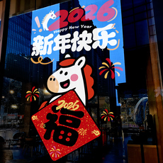 2026新年装饰静电贴马年窗花店铺节日气氛场景布置橱窗玻璃门贴纸