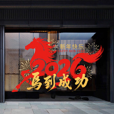 2026新年贴纸装饰玻璃贴过年马年春节商店氛围布置静电贴橱窗贴画