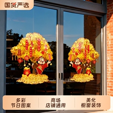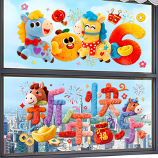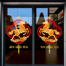 新年装饰窗花门贴场景氛围布置静电玻璃贴纸窗贴马年春节公司店铺