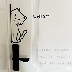 hello歪头打招呼的可爱小猫咪贴纸 房门厨房移门透明玻璃门防撞贴