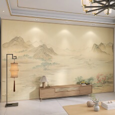 2026新款3D中式山水宋氏美学山水电视背景墙壁布茶室客厅墙纸壁画