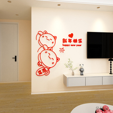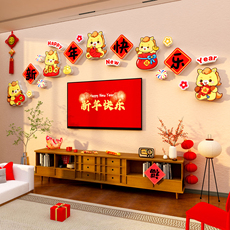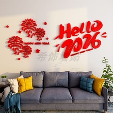 2026马新年快乐春节电视机背景墙面装饰挂件客厅沙发亚克力3d立体