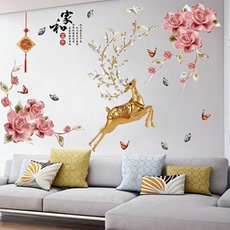 新年电视背景墙装饰墙贴上自粘3d立体墙面壁贴纸中式客厅遮丑贴画