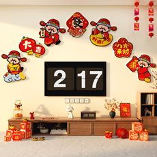 客厅新年氛围布置蜡笔小新装饰电视背景墙面2026马年春节福字贴纸