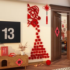 2026马新年春节财神爷贴电视机背景墙面装饰客厅挂件亚克力3d立体