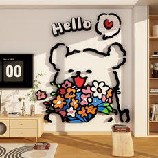 客厅线条小狗电视背景大白墙装饰贴纸卧室自粘4d立体海报卡通墙贴
