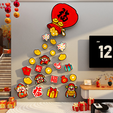 新年装饰墙贴吉祥如意3d亚克力立体墙贴客厅玄关电视背景墙纸贴画