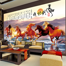 2026新年马到成功自粘贴画八骏图立体贴纸客厅电视背景墙装饰壁画