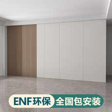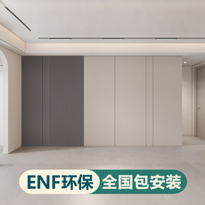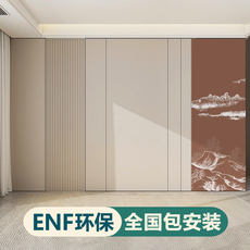 ENF现代简约沙发电视背景墙柜子一体硬装木饰面碳晶护墙板包安装