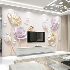 壁画定制3d立体中式意境荷花电视背景墙壁纸客厅壁布装饰墙布墙纸