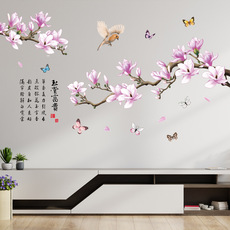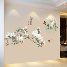 玉兰花客厅电视背景墙贴画自粘中国风墙贴纸卧室床头温馨装饰贴纸