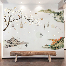 水墨山水画墙贴画福满堂电视沙发背景墙餐厅卫生间瓷砖自粘装饰画