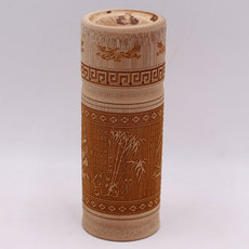 竹制有盖茶叶水杯 竹木工艺品 碳化竹雕刻茶经高杯 旅游礼品包邮
