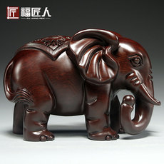 黑檀木雕大象摆件实木质雕刻一对象红木家居玄关办公室装饰工艺品