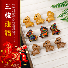 马年大吉檀香木雕刻卡通马diy项链配件吊坠手机链钥匙生肖马挂件