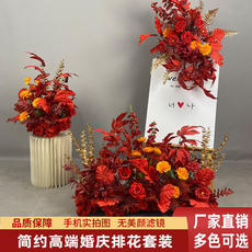 新款婚庆舞台装饰地排花婚礼花艺T台路引花仿真花酒店迎宾排花艺
