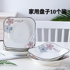 盘子菜盘家用陶瓷果盘组合北欧黑边创意深盘碟四方形装餐具菜碟子