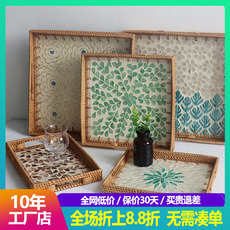 进口手工藤编托盘ins北欧风日系清新贝壳收纳盘果盘餐桌水壶茶盘