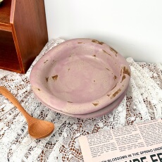 漫生活老板娘景德镇手工粗陶翻边深盘家用水果盘菜盘好看粉紫色