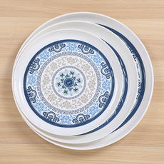 日式塑料盘子家用圆形菜盘骨碟餐具套装ins风早餐水果盘火锅平盘